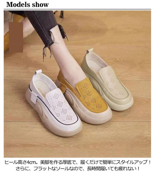 | 毎日履きたい、定番スリッポンシューズ! ヒール高さ4cm。美脚を作る厚底で、履くだけで簡単にスタイルアップ!さらに、フラットなソールなので、長時間履いても疲れない! ソフトで快適なPU+アウトソールには耐摩耗性に優れたラバーを使用し、滑りにくく、旅行やショッピングでも、足が疲れず快適に過ごせるので、安全で快適な歩行を実現します。 軽量で、足へ負担をかけないので、疲れにくい厚底スニーカーです。 旅行や買い物中でも足が疲れずに快適に歩くことができ、安全で快適な歩行体験を提供します。新作、肌に優しい、快適な履き心地。 通勤・オフィス・ビジネス・彼氏とのでデートに普段使いにとっても便利なアイテムです♪ | |