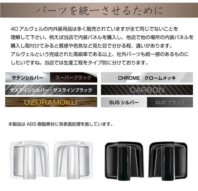 | 商品名 | 40系 アルファード ヴェルファイア サイドドアインナードアハンドルプロテクター 4pcs 全2色 |