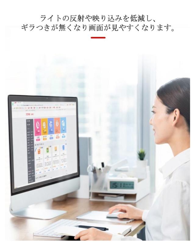 | パソコンの画面を傷や衝撃から液晶画面を保護するフィルムです 表面をフッ素加工しており、指紋、皮脂がつきにくく、すぐふき取れます。 フィルム表面が抗菌処理されており、細菌の繁殖を防ぎます。 フィルムで液晶ディスプレイを保護します。また適当な柔軟性があり貼り付けやすいです。 ライトの反射や映り込みを低減し、ギラつきが無くなり画面が見やすくなります。 特殊なシリコン吸着素材を採用。指やカードで簡単に押し出すことができます | |