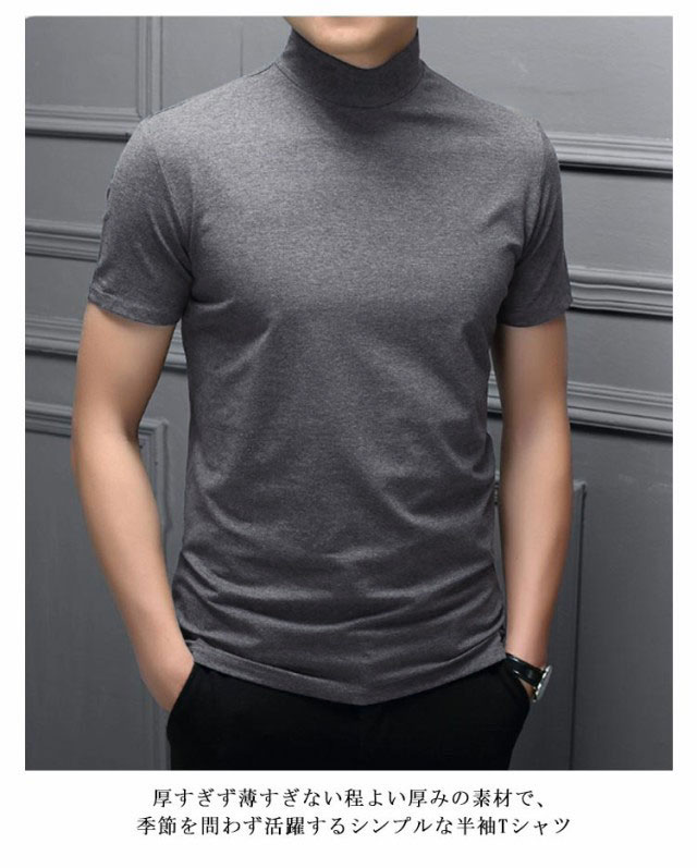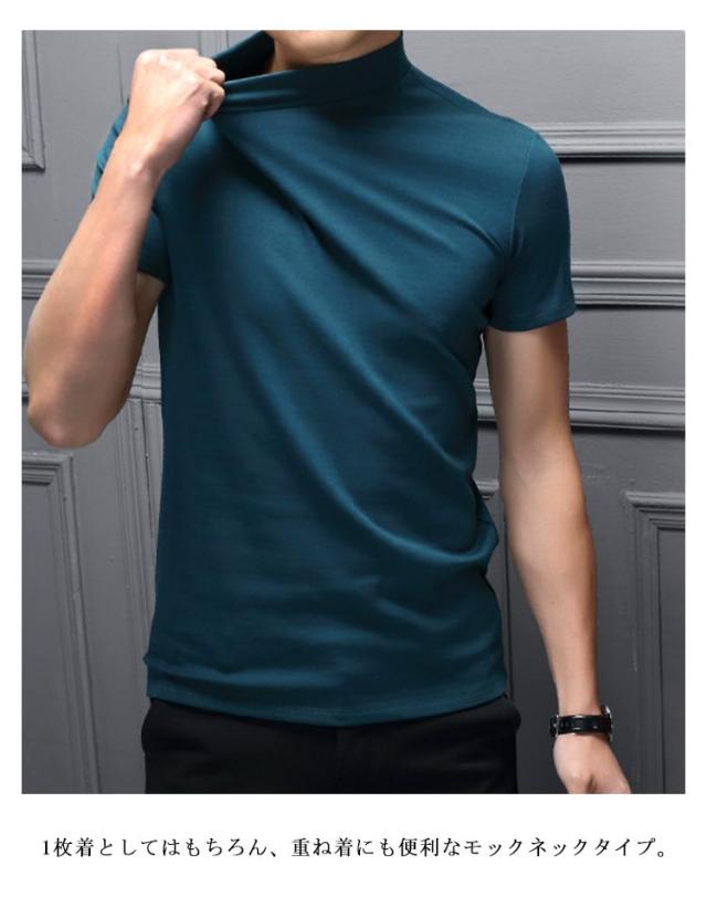 【2枚セット】 【送料無料】 ハイネック tシャツ メンズ 半袖 tシャツ 無地 カットソー 夏 モックネック ハイネック tシャツ ティーシャツ ゴルフtシャツ ゴルフウェア カジュアル シンプル ビジネス オフィス 普段着 夏 夏服 送料無料