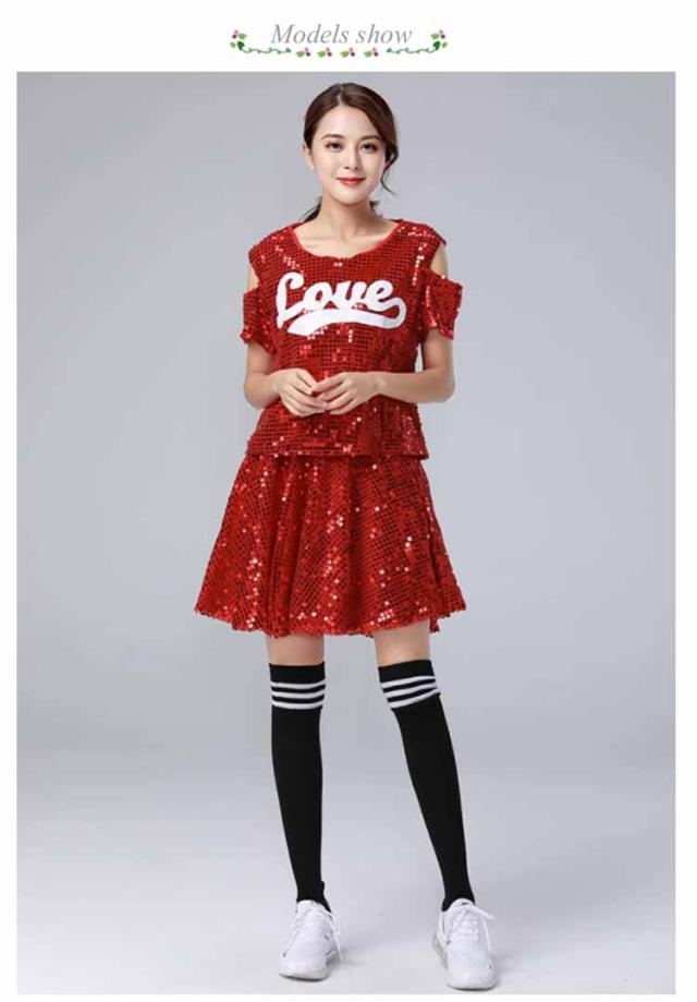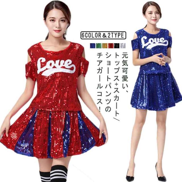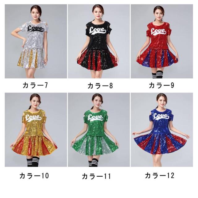 送料無料 スパンコール チアリーダー衣装 ダンス衣装 チアガール 衣装 ユニフォーム チア 制服 コスチューム チア制服 サッカー バスケ ハロウィン イベント S M L XL 2XL 3XL 4XL