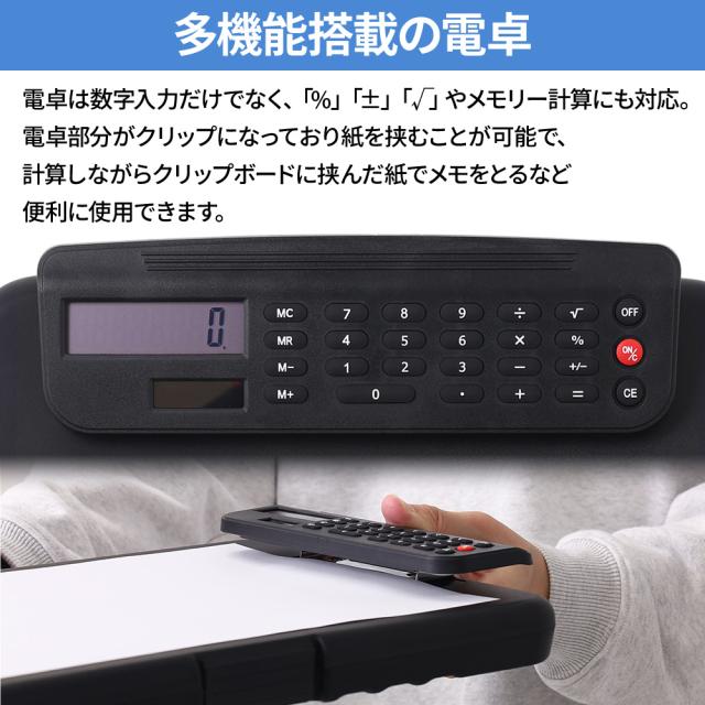 計算しながらクリップボードに挟んだ紙でメモをとるなど、便利に使用できます。