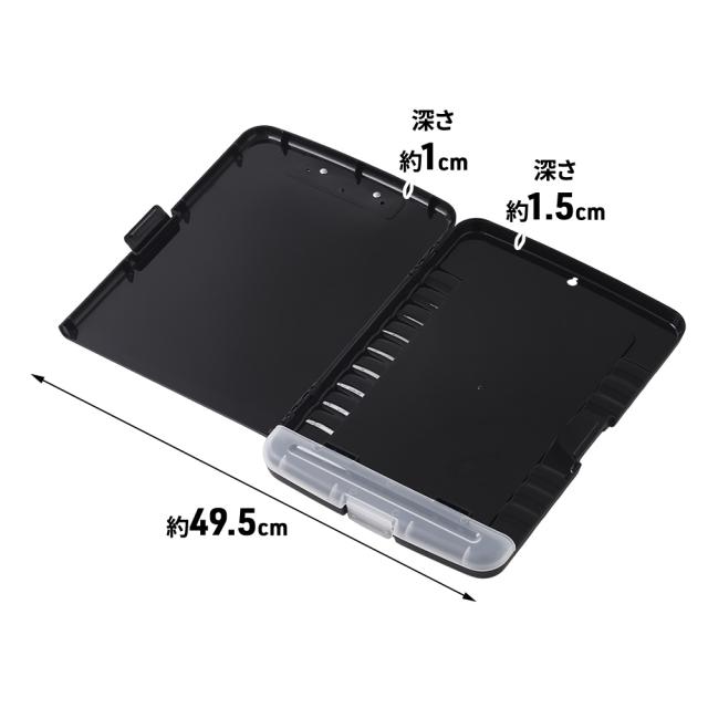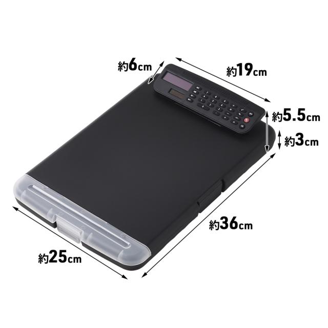 クリップボード+ファイルケース+電卓+ペンケースがそろった一品。