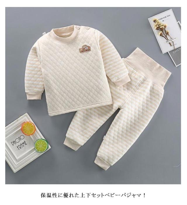 | ウエストはのびのびゴムだから着脱しやすく動きやすい! ハイウエストデザイン、動いてもお腹が出にくく安心です。 保温性に優れた上下セットベビーパジャマ! ぽかぽかあったかく包まれて、赤ちゃんもぐっすり眠ることができます。 厚みがあるので、お子様をあったかく包まれて、ぐっすり眠ることができます。 袖口と裾口はリブ仕様で暖かさキープ、冷気が侵入しにくい。 プチプライスだから、洗い替え用も買いやすい♪ | |