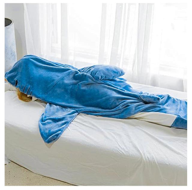 | 頭から足まで全身入れる・すっぽり包んでくれる♪サメ寝袋 ブランケット 着る毛布! 軽量で暖かく、夏の冷房対策と冬の防寒グッズとして最適! 【やわらかい肌にやさしい素材】サメ寝袋の色は前面が白、背面がグレーブルーで。2色ステッチのフランネルファッションとキュート、安全で肌にやさしい、暖かく、快適で、通気性がありビロードのような柔らかな感触がたまらない。 【快適で温かみのあるオールインワンブランケット】このサメ 着る毛布は、頭から足まで全身入れることができるので、全身が毛布の暖かさを感じることができます。 ユニークなサメの形、クラシックな色、 ゆったりとしたスペース、歯に隠されたバックルのデザイン、大きなエントランス、寝袋や居心地の良いブランケットとしても使用できる。 | |