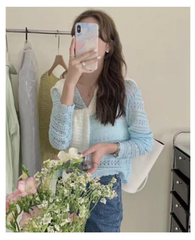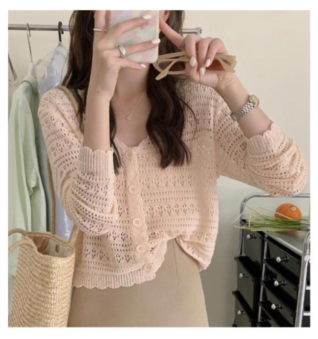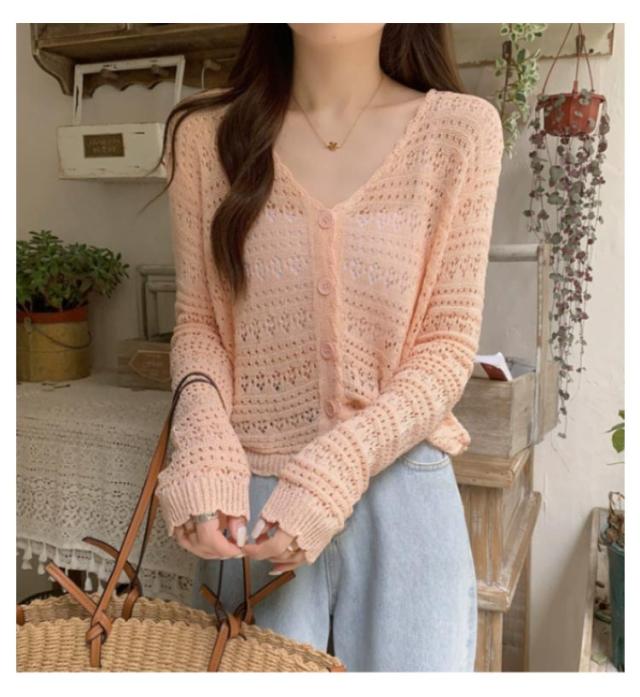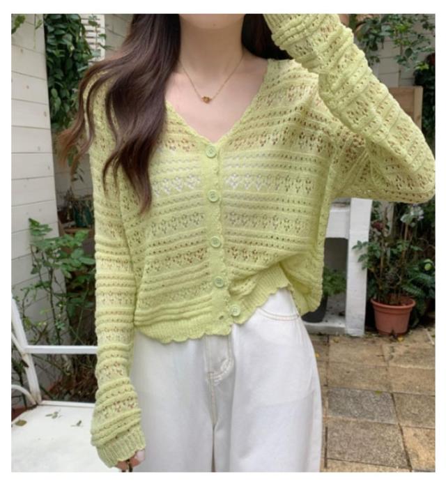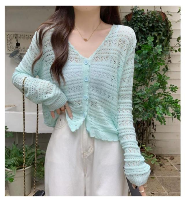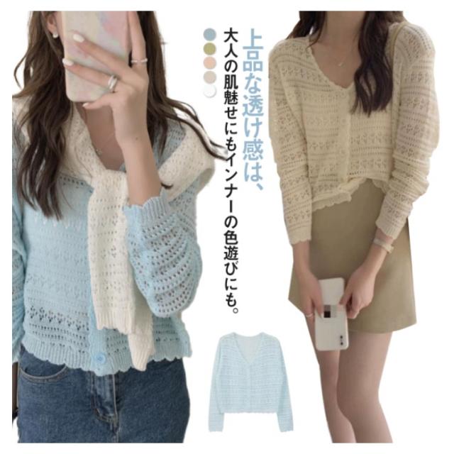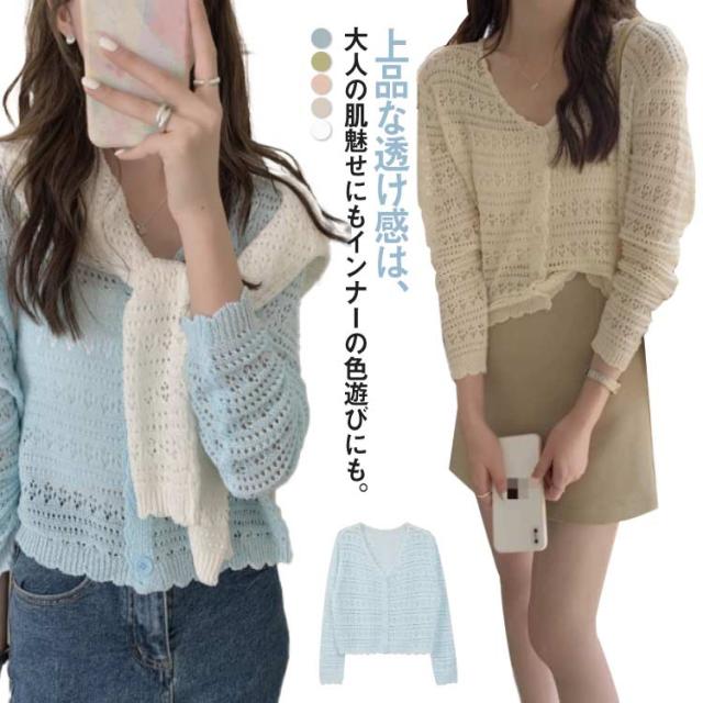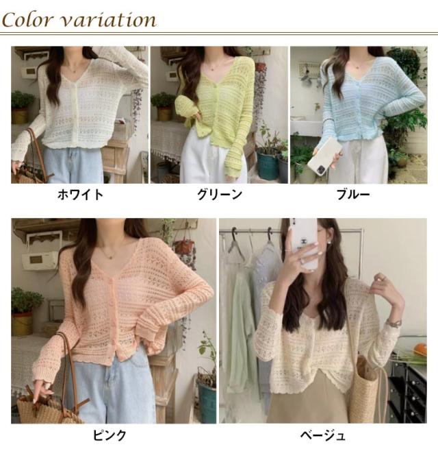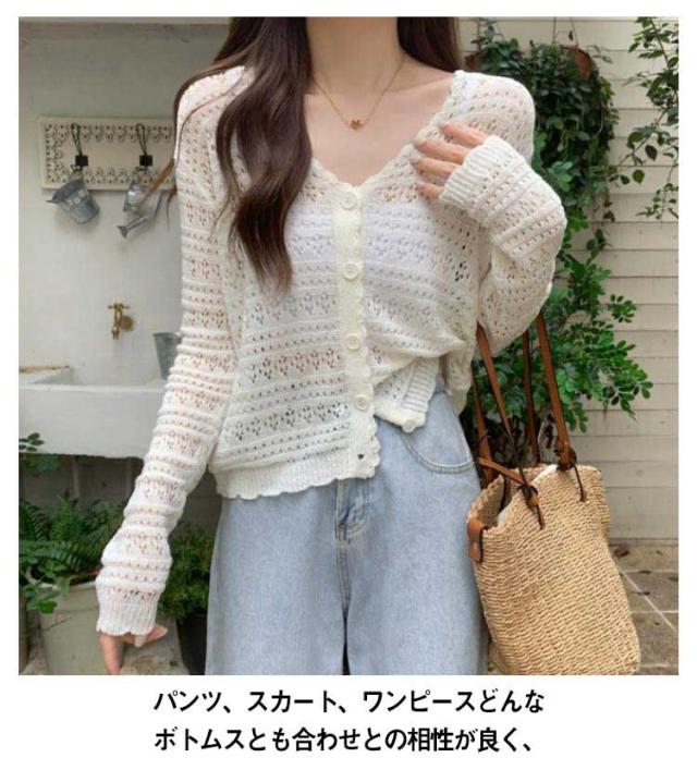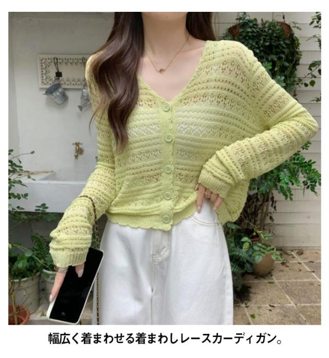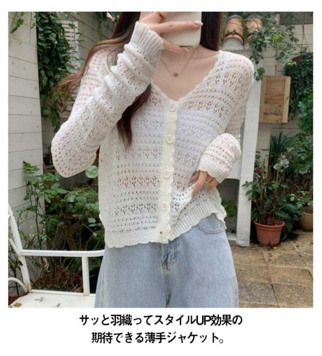 透かし編み トップス 羽織り レディース カーディガン vネック 前開き トップス ショート丈 冷房対策 30代 長袖カーディガン 春 夏 秋 薄手 シンプル 20代 サマーカーディガン