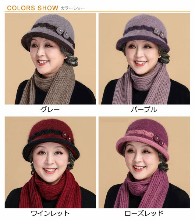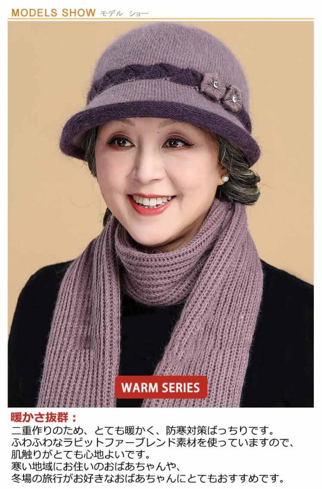 | 伸縮素材のため54-59cmまで、どなたでもフィットいたします。 暖かさ抜群:二重作りのため、とても暖かく、防寒対策ばっちりです。ふわふわなラビットファーブレンド素材を使っていますので、肌触りがとても心地よいです。寒い地域にお住いのおばあちゃんや、冬場の旅行がお好きなおばあちゃんにとてもおすすめです。 優雅なデザイン:優しい丸みのあるシルエットで、非常に上品に見えます。正面からも横からも可愛く見えます。おばあちゃん、お母様へのプレゼントに、きっと喜ばれるでしょう。 | |