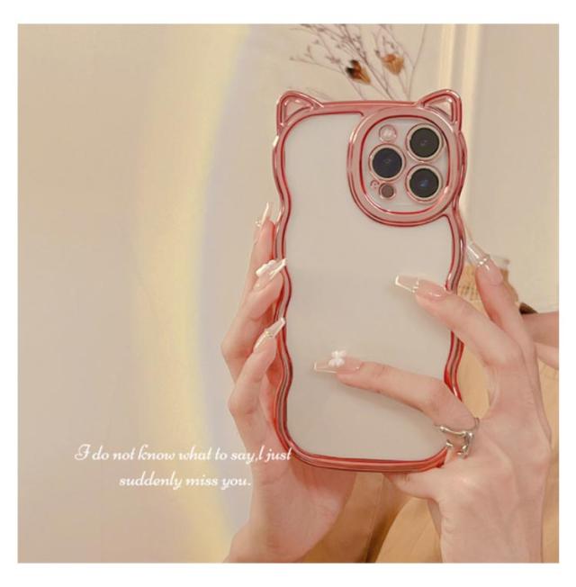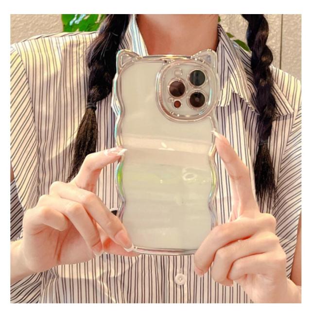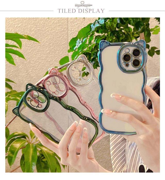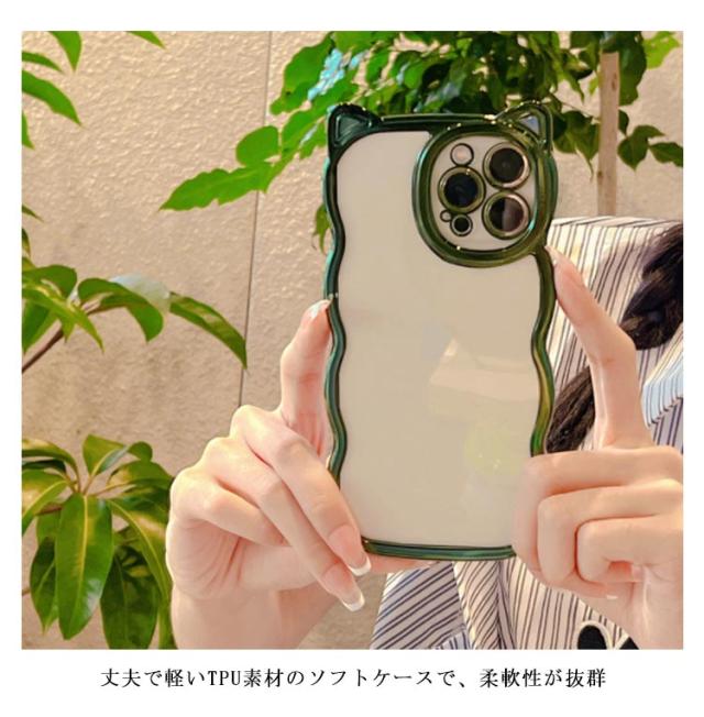 iPhoneケース うねうね なみなみ iphone15 iphone15pro max iphone15 iphone14 iphone13 猫耳 ケース メッキ シリコン 耐衝撃 かわいい スマホケース ウェーブ クリアケース クリア 透明 可愛い おしゃれ SNS 大人かわいい 女子 送料無料