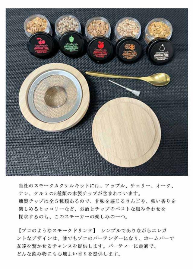 カクテルスモーカー スモークヘッド燻製器 5種類の木製チップ付き カクテルスモーカーキット グラストップスモーカー 燻製器 カクテルスモーカーセット ウィスキースモーカーキット 木製 スプーン付き 小さなブラシ付き