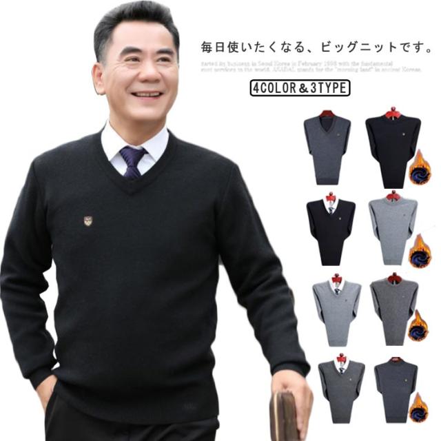 薄手と裏起毛!トップス ニット セーター カーディガン メンズ シャツブルゾン ニット 重ね着風 長袖 メンズファッション クルーネック 無地 シンプル カジュアル キレイめ 事務服 紳士 ビジネス 送料無料