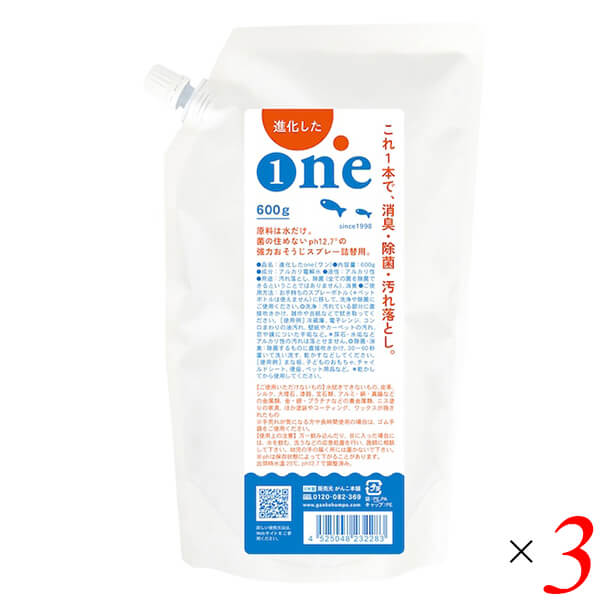【4/6(月)9:59迄!ポイント5%+日曜5%】がんこ本舗 進化したone 詰替パック600g 3個セット アルカリ電解水 アルカリ PH