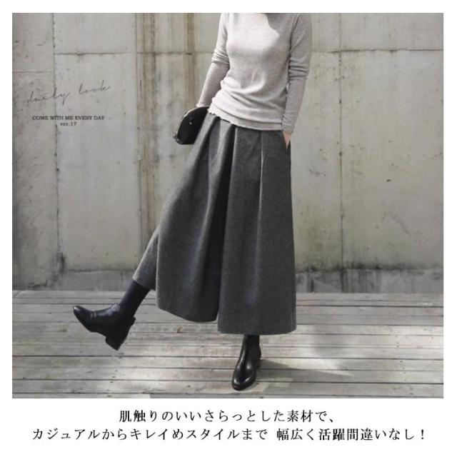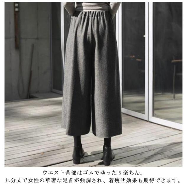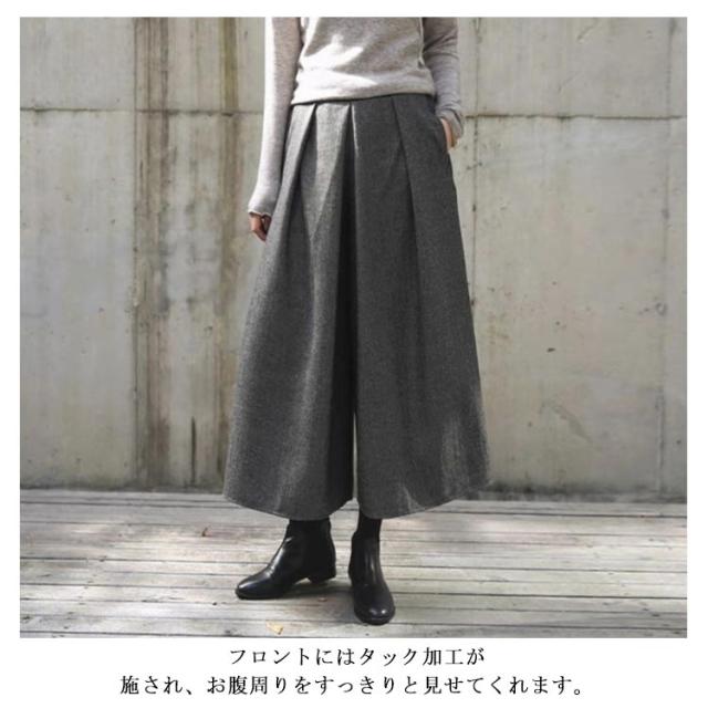 ガウチョパンツ レディース ワイドパンツ ボトムス ズボン ガウチョ 膝下 ワイド アンクルパンツ 九分丈 美脚 細見え おしゃれ 大きいサイズ ゆったり 秋 冬 暖かい ゆったり 体型カバー 防寒 保温 スカンツ 揺られる 落ち感 フェミニン