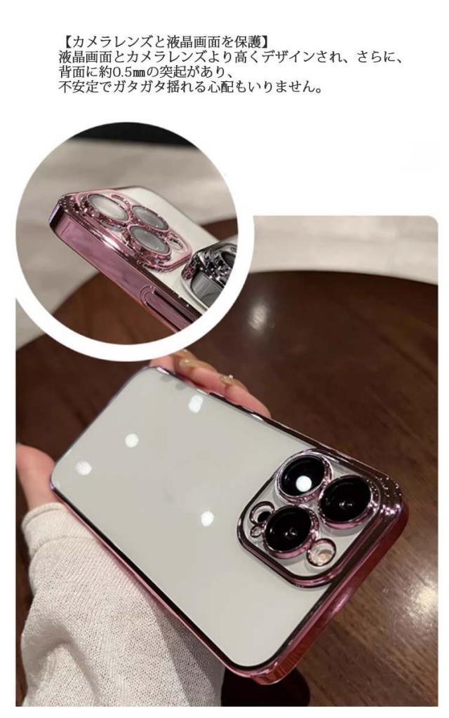 | 【驚きの透明感・メッキ加工】背面は透き通った高い透明度を誇り、フレームは多層メッキ加工技術によって設計。オシャレで独特の輝きを放ち、シンプルで高級感溢れています。本体の美しさはそのままに本体を保護しているのです。 【カメラレンズと液晶画面を保護】液晶画面とカメラレンズより高くデザインされ、さらに、背面に約0.5mmの突起があり、不安定でガタガタ揺れる心配もいりません。 【耐衝撃】厳密なテストにより、iPhoneが全面的に保護されることを実証しました。衝撃吸収エアガードコーナーにより、スマホを衝撃からしっかり保護します。 【軽量・薄型】このケースは本体の薄さを維持しつつ、カメラレンズもしっかり保護出来る高さで設計されています。また、程よい厚さで設計してケースを装着したまま「ワイヤレス充電」が行えます。 | |