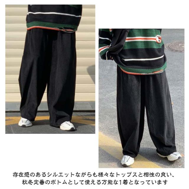 コーデュロイ ワイドパンツ メンズ コーデュロイパンツ ストレートパンツ ワイド イージーパンツ 裏起毛 厚手 秋冬 ズボン 暖かい 防寒 保温 カジュアルパンツ タック入り 大きいサイズ 大人 カジュアル ストリート 韓国 ブラック 茶色 【送無】
