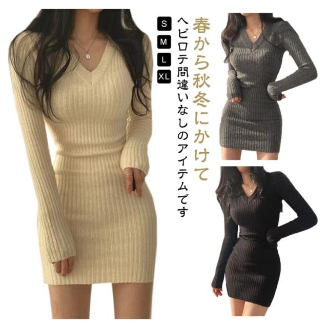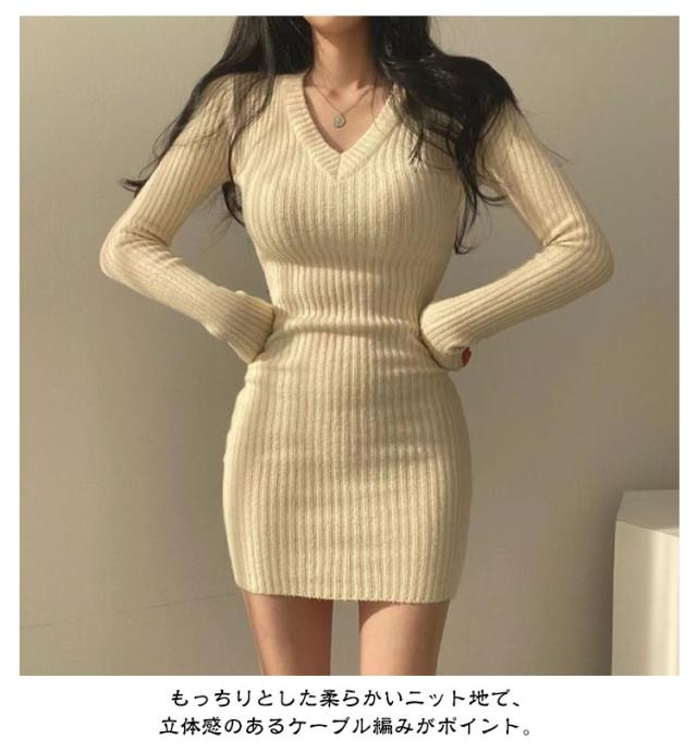 ニット ワンピース 秋 冬 タイト レディース ワンピ Vネック セクシー ニットワンピ 長袖 タイトワンピ 秋冬 ケーブル編み ミニ ミニ丈 きれいめ 結婚式 着痩せ 通勤 オフィス セーター ゆったり 韓国風 大人 20代 30代 40代 送料無料