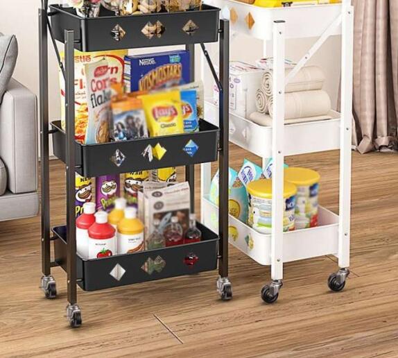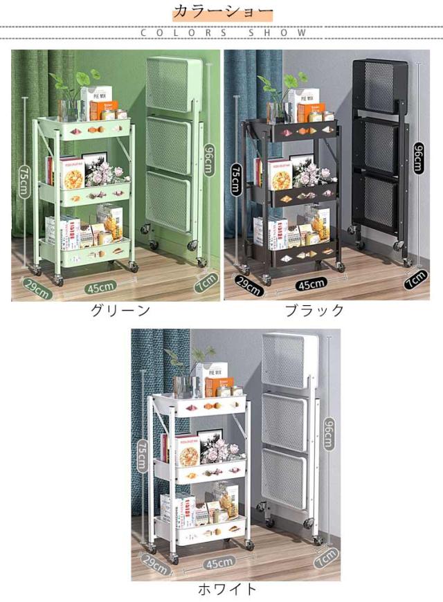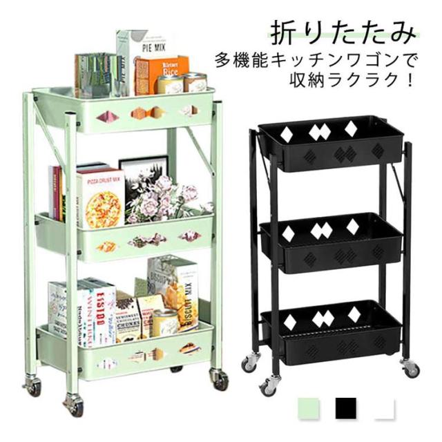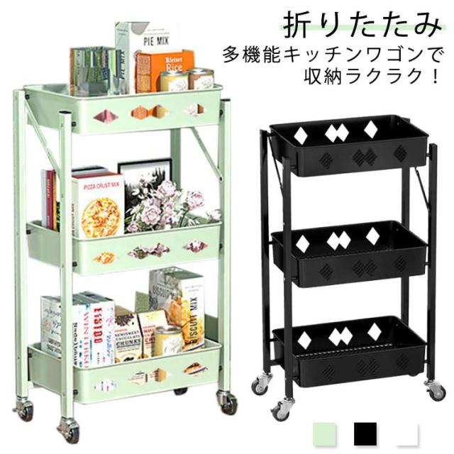 キッチンワゴン キャスター付き 折りたたみ 北欧 3段 完成品 スリム キッチンラック バスケットワゴン スチールラック おもちゃ 収納 ラック インテリア キッチン リビング 洗面所