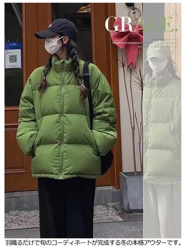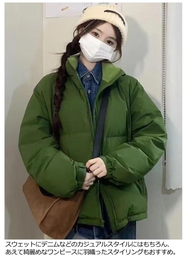 ダウンジャケット コート レディース 冬服 アウター ファイバーダウン 中綿ジャケット ハイネック スタンドカラー ミドル丈 ジップアップ 防寒 厚手 暖かい ゆったり 着やせ かわいい おしゃれ 無地 韓国
