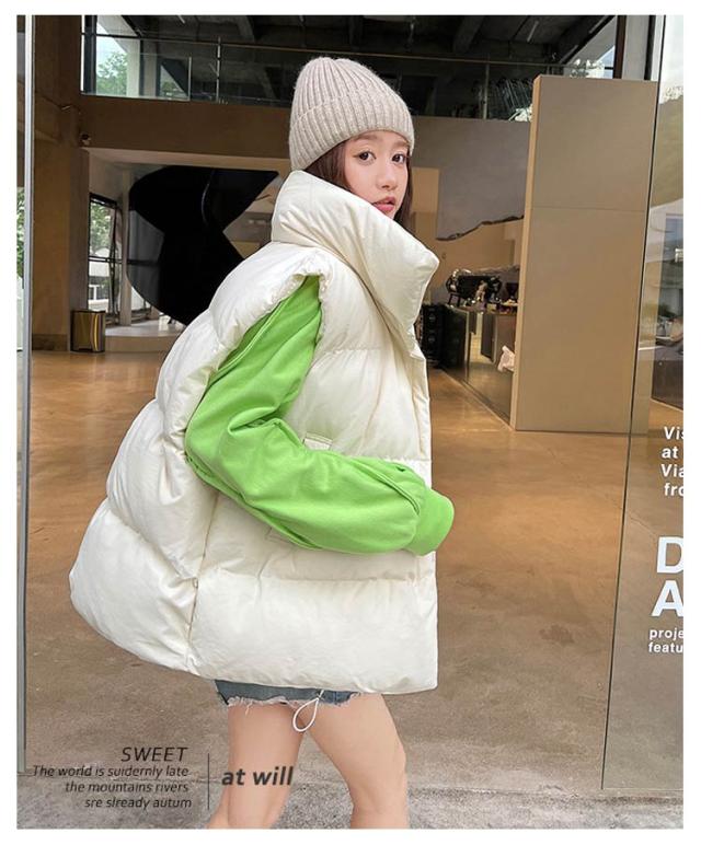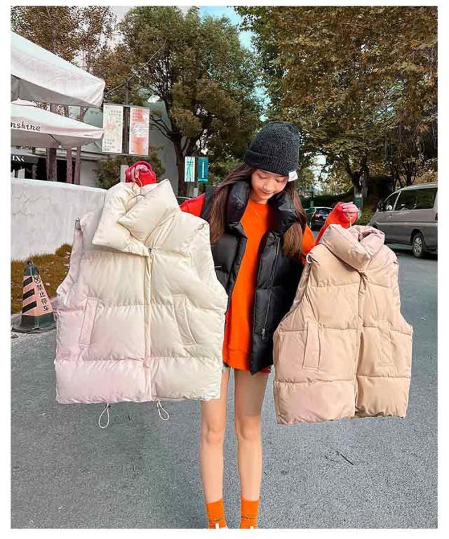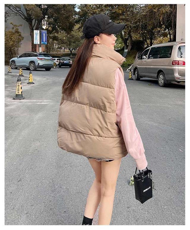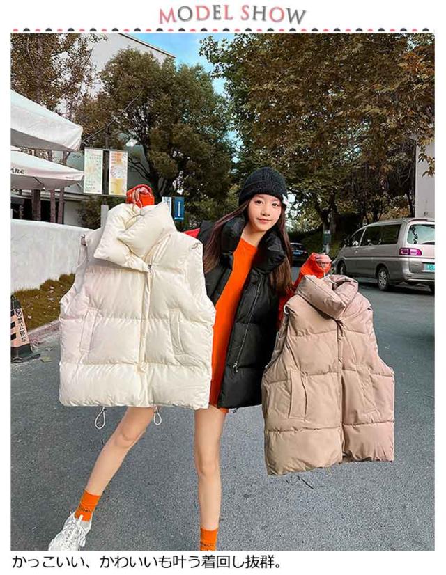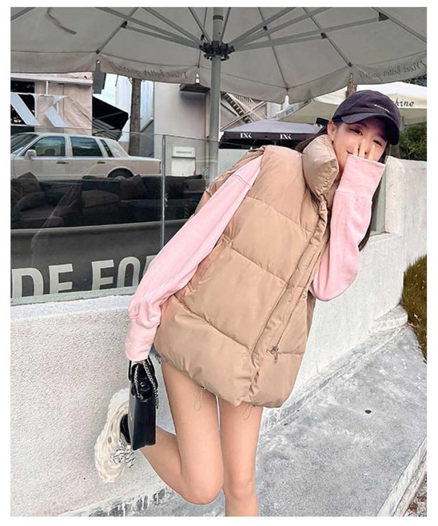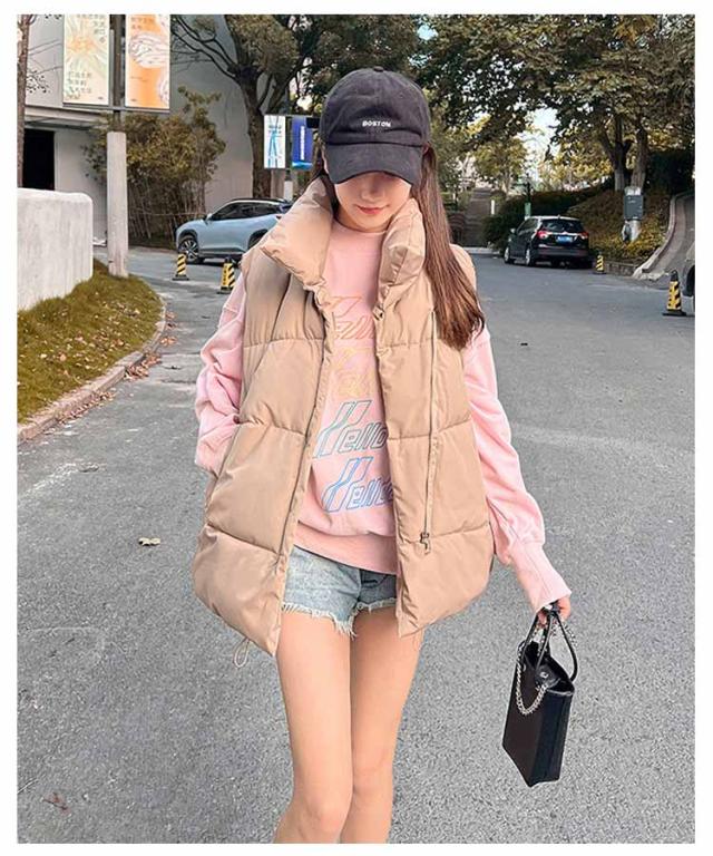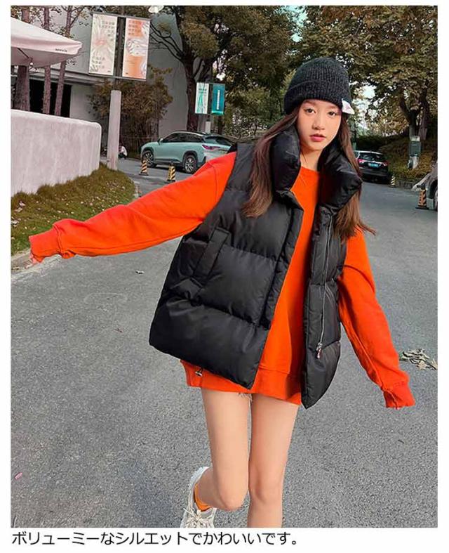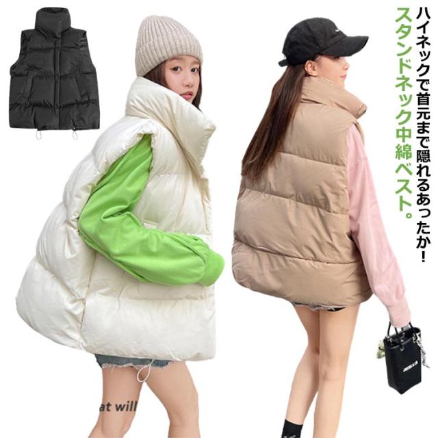 中綿ベスト レディース ベスト アウター トップス ゆったり 立ち襟 スタンドカラー 暖かい 保温 ダウン風 ベスト ダウンベスト ポケット付き 防寒対策 大きいサイズ 冬物 普段着 お出かけ あったか かわいい おしゃれ 韓国ファッション