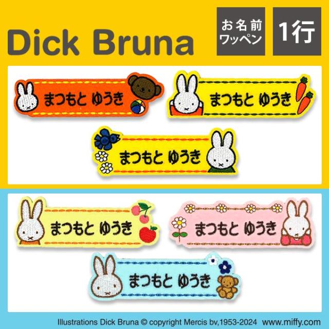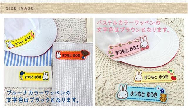 お名前ワッペン ミッフィー キャラクター ブルーナカラー パステルカラー 1行 3枚セット ネームワッペン アイロン 入園 刺繍 OR