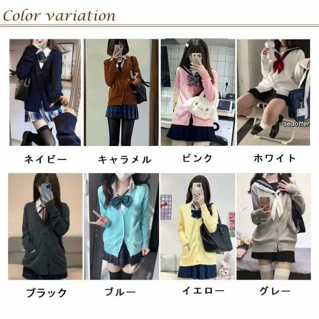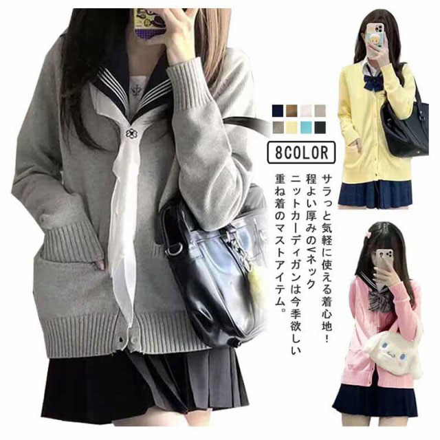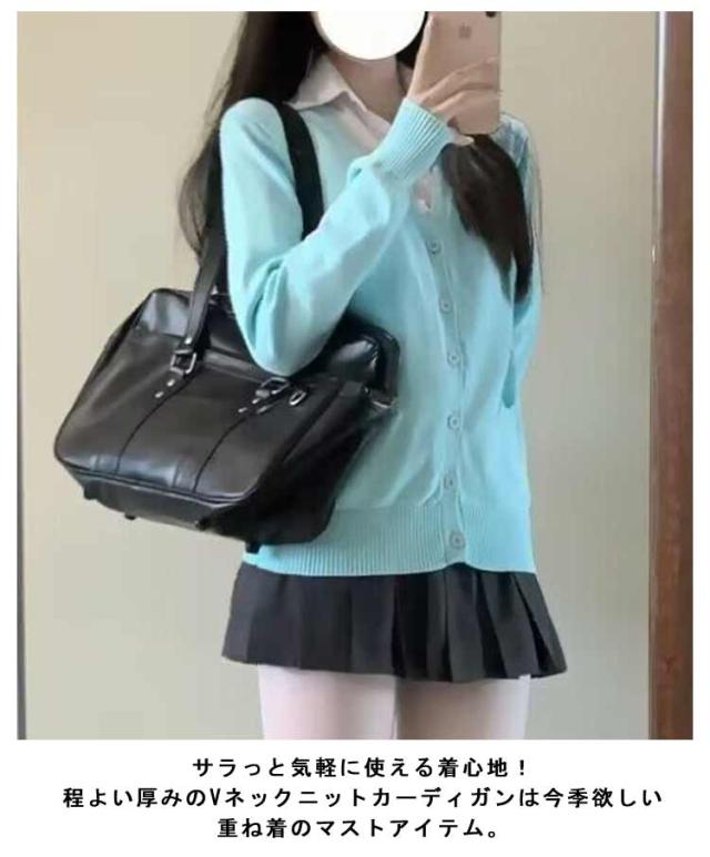 全8色!スクールカーディガン 無地 ゆったり Vネック ニット スクールセーター ニットカーディガン 大きいサイズ 制服 学生服 女子 高校生 中学生 通学 秋冬 春 紺 キャメル 青 ピンク 白