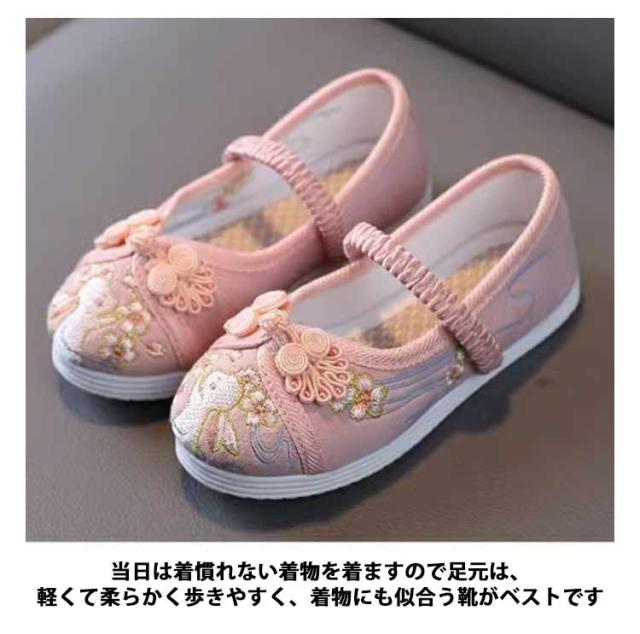 | 兎の桜が刺繍された可愛い靴です! 当日は着慣れない着物を着ますので足元は、軽くて柔らかく歩きやすく、着物にも似合う靴がベストです 普通の靴を履かせる選択肢もありますが、ここはぜひ写真の見た目にもこだわって、和柄で着物にもばっちりな歩きやすい靴をおすすめします! | |