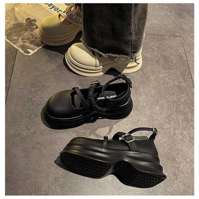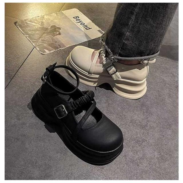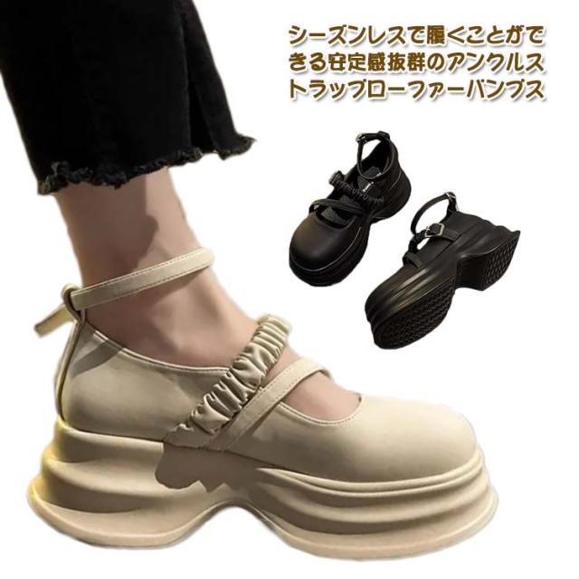 厚底ローファー ローファー レディース ストラップ パンプス ストラップパンプス 厚底 ストラップシューズ 通学 高校生 女子高生 可愛い 学生靴 通勤 通学 歩きやすい 防滑 美脚 ゴスロリ 制服 ロリータ コスプレ メイド ブラック 4cmヒール