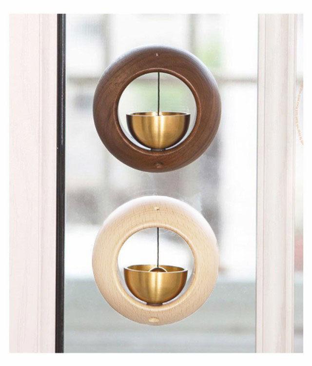 | ドアにも、引き戸にも対応 戸を開け閉めするたびに、優しくさわやかな音が響きます。 天然木を採用し、丸形のモチーフ自然な美しさと人工の逞しさを兼ね備えたアイテム | |