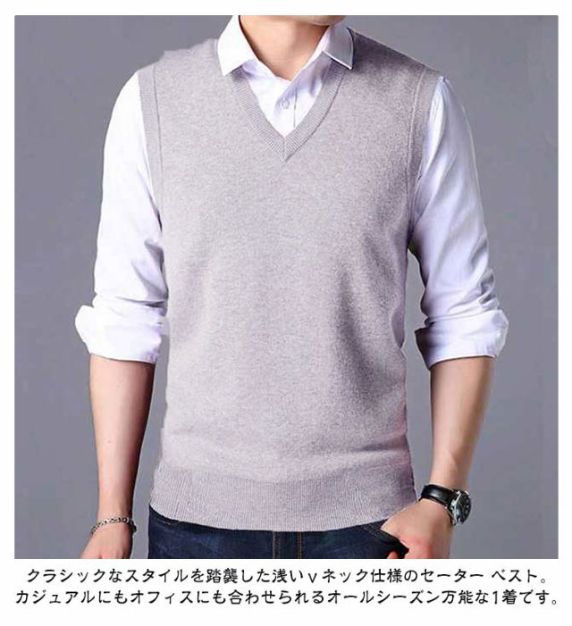 | 保温性、保湿性抜群のVネックセーターベスト 保温性、伸縮性に優れたほどよいフィット感!寒い季節以外でも夏場の冷房対策などに役立ち、年中大活躍する着心地の良いVネックベストです。 クラシックなスタイルを踏襲した浅いvネック仕様のセーター ベスト。カジュアルにもオフィスにも合わせられるオールシーズン万能な1着です。 落ち着いたカラーリングで、コーディネートに取り入れやすく、オフィスカジュアルスタイルにも使えます。 薄手の生地で丁寧に縫製されており、スーツの下に重ね着してもスッキリと決まります。 クラシックな色合いで合わせやすい。ビジネスやカジュアルも幅広く使えます。 | |