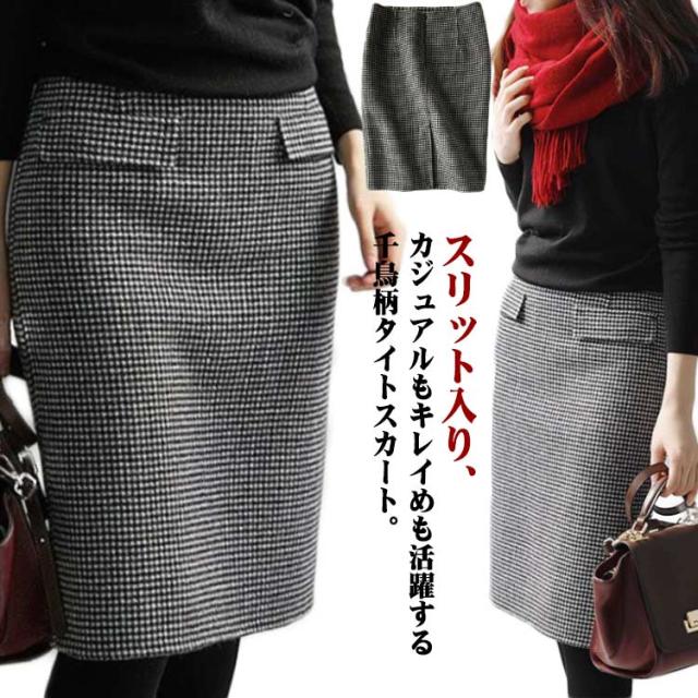 タイトスカート ひざ丈 スリット レディース ペンシルスカート 千鳥柄 スカート スリット入り ミディアム丈 秋冬 キレイめ 膝丈 ミディアムスカート ハイウエスト 通勤 フォーマル エレガント OL オフィス S M L XL