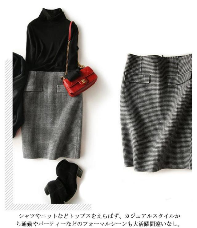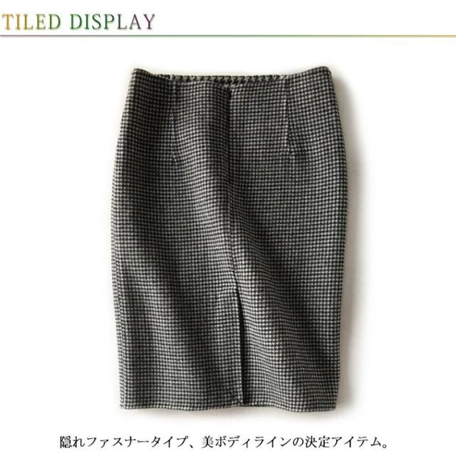 | スリット入り、カジュアルもキレイめも活躍する千鳥柄タイトスカート。 バランスが取りやすいミディアム丈、シンプルで合わせやすい万能アイテム。 しっかりした厚みのある生地、スッキリしたキレイなシルエットが魅力的。 隠れファスナータイプ、美ボディラインの決定アイテム。 シャツやニットなどトップスをえらばず、カジュアルスタイルから通勤やパーティーなどのフォーマルシーンも大活躍間違いなし。 | |