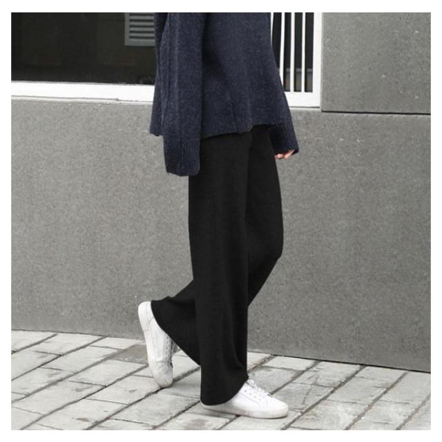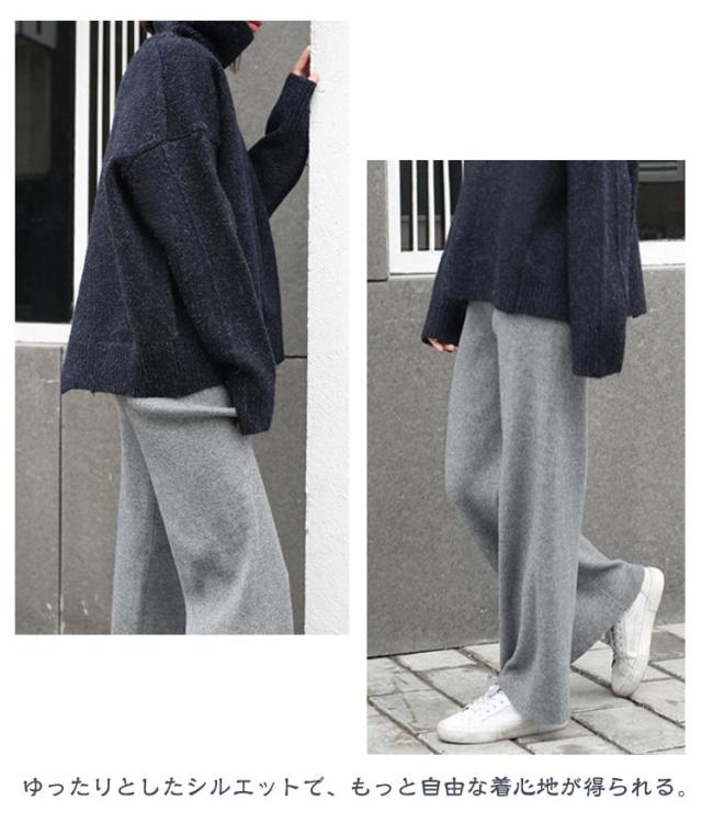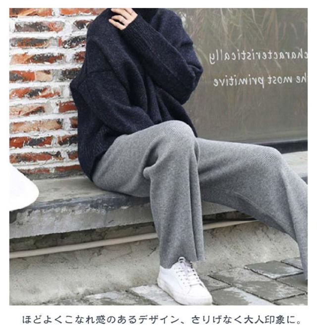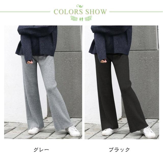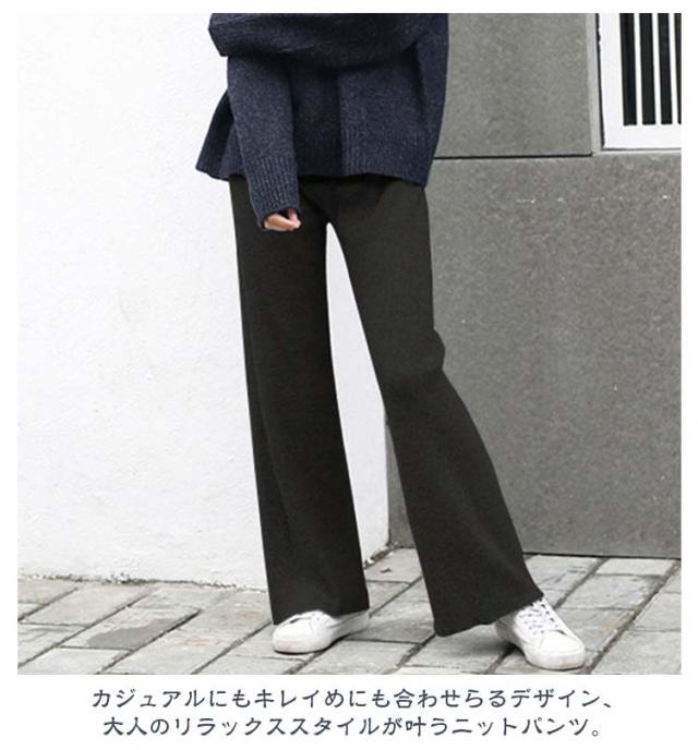 ワイドパンツ ニットパンツ レディース リブパンツ 秋冬 秋 冬 リブ リブニットパンツ ウエストゴム ストレートパンツ プリーツパンツ 大きいサイズ カジュアル