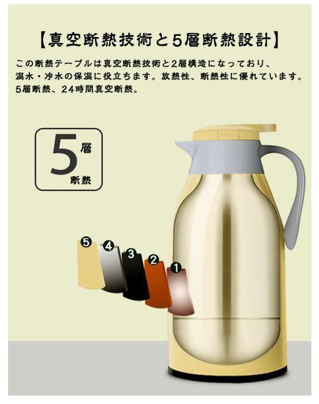 5層/24時間真空断熱 魔法瓶 1.9リットル 1.6リットル 1リットル 断熱ポット 保温ポット 家庭用ケトル 大容量 まほうびん ポット おしゃれ 北欧 保温 保冷 寮 家庭用 キッチン 寮 ワンタッチ 広口 便利 開閉簡単