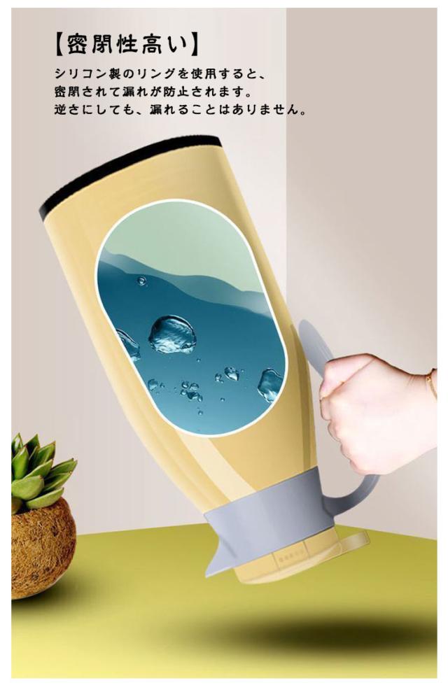 | 【真空断熱技術と5層断熱設計】この断熱テーブルは真空断熱技術と2層構造になっており、温水・冷水の保温に役立ちます。放熱性、断熱性に優れています。 5層断熱、24時間真空断熱。 【2L大容量】2Lの大容量は、頻繁に水を沸かさないので、その日の飲料水ニーズに応え、時間を節約できます。広く使用されている温かい飲み物と冷たい飲み物(お茶、コーヒー、水、ジュースなど)を数時間置いて、飲料の安全性と健康を確保できます。ただし、水を入れすぎないように注意してください。 【ワンボタンプッシュ設計】片手で操作できるワンボタンプッシュ設計で、軽く押すだけで簡単に開閉できます。使いやすく操作も簡単です。 【密閉性高い】シリコン製のリングを使用すると、密閉されて漏れが防止されます。逆さにしても、漏れることはありません。 | |