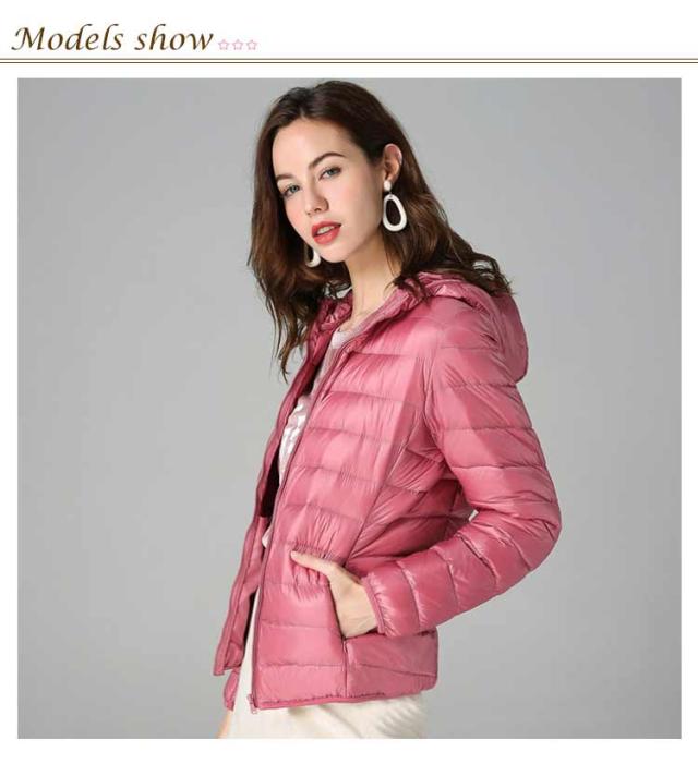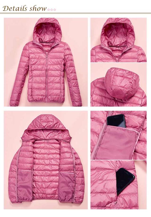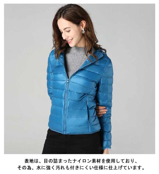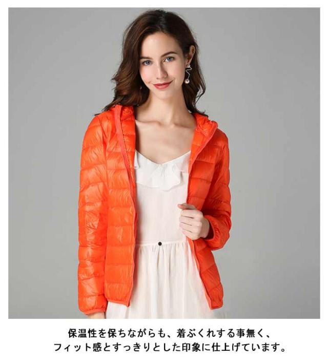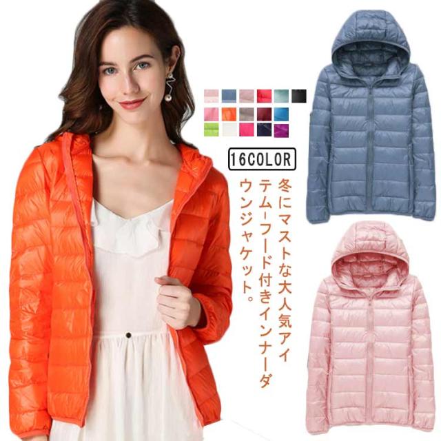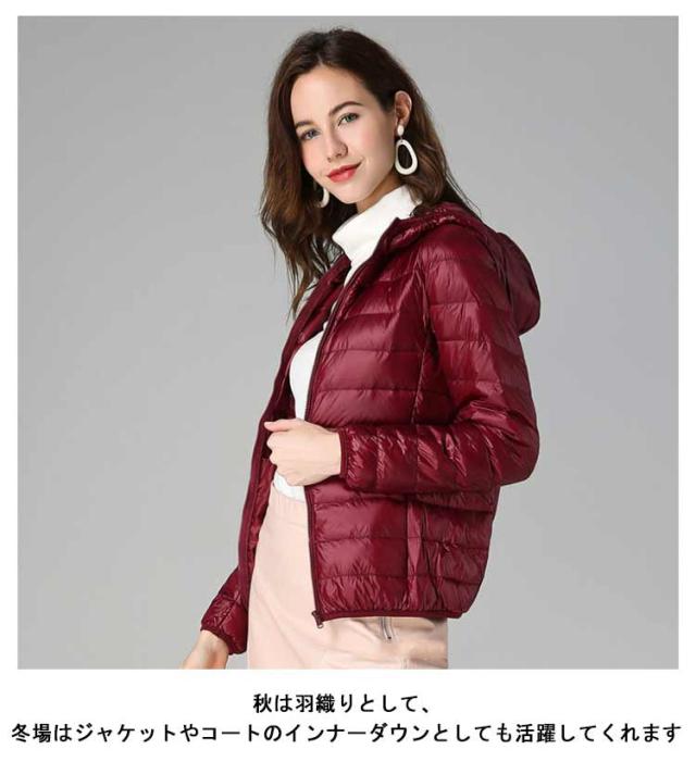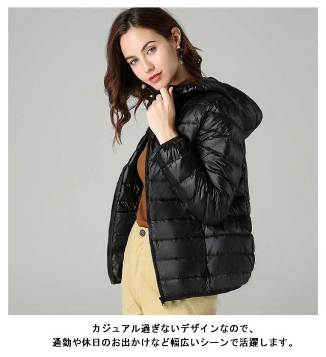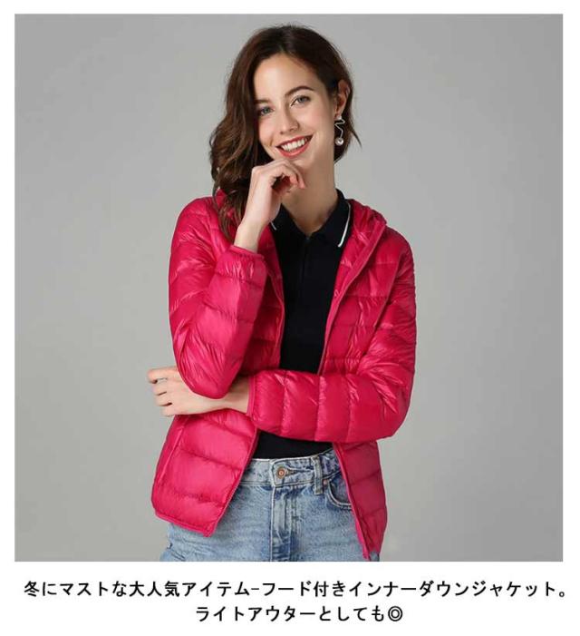 ライトダウン インナーダウン ジャケット フード付き 軽量 薄手 防寒 保温 あたっか 長袖 ダウンジャケット ショート丈 スリム 細身 ポケッタブル 収納袋付き ポケット付き レディース 秋 冬 アウター 上着 大きいサイズ S M L XL 2XL 3XL 4XL 【送無】