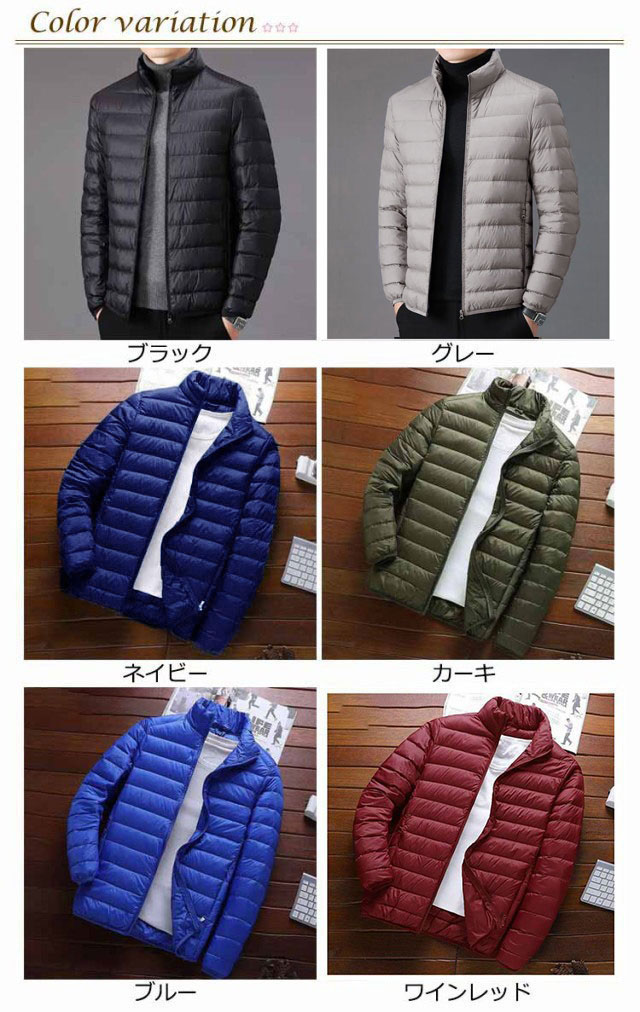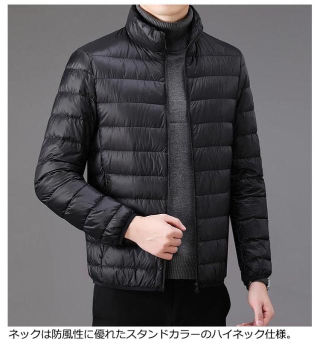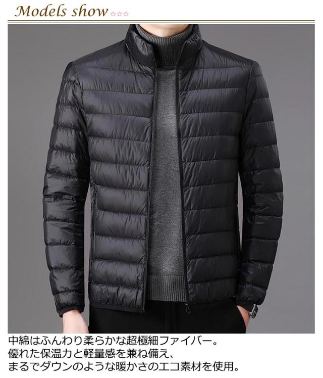 中綿ジャケット メンズ ファイバー ダウンジャケット インナーダウン ライトダウン ジャケット スタンドカラー 立て襟 細身 軽量 薄手 防寒 保温 暖かい ファイバーダウン インナージャケット 中綿コート ショート丈 ダウンコート 秋冬 アウター 大きいサイズ