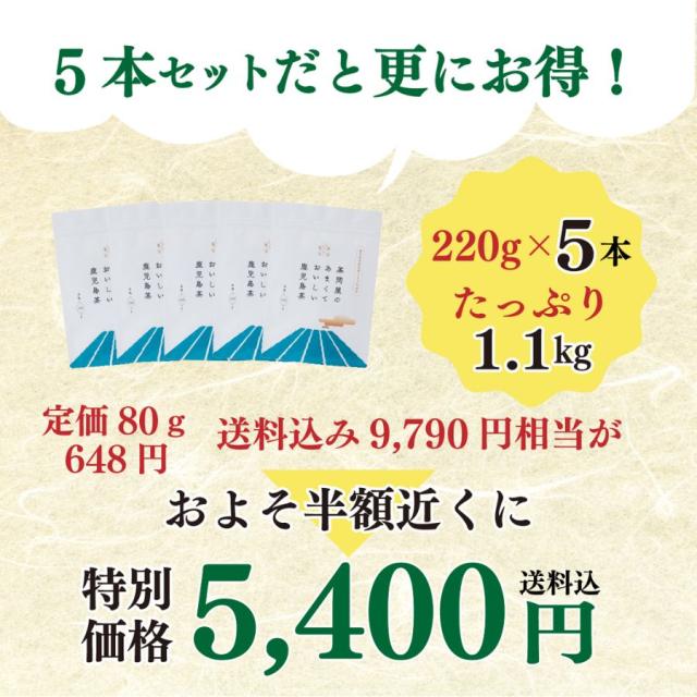 【送料無料】茶問屋のあまくておいしい鹿児島茶5本セット 220g×5 | 緑茶 お茶 緑茶 茶葉 日本茶 煎茶 お徳用 あまい 鹿児島 ブレンド茶 茶 ちらん おちゃ 知覧 高級 高級茶葉 お茶っ葉 お茶葉 お茶の葉 日本産 国産 健康茶 ギフト プレゼント