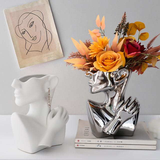 花瓶 おしゃれ ボディーアート 北欧 ins 顔 小サイズ【シルエット 人 人体 インテリア ドライフラワー 雑貨 装飾 オブジェ シンプル おもしろ SNS インスタ映え】