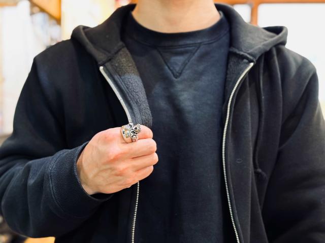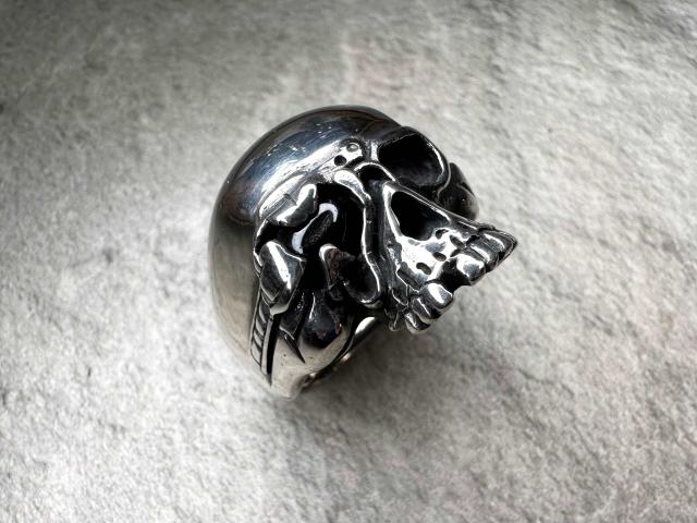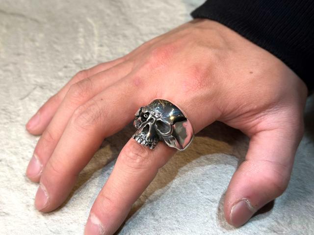 定番のハーフフェイススカルにアクセントが入ったお洒落なリングです。