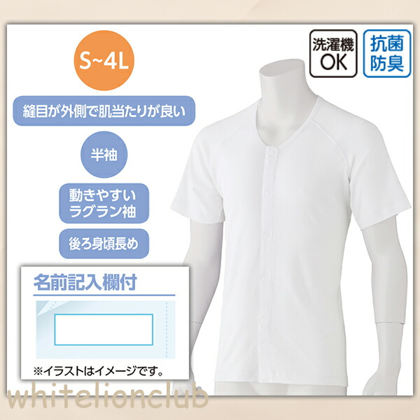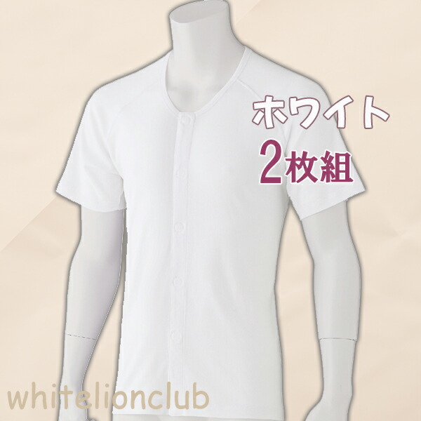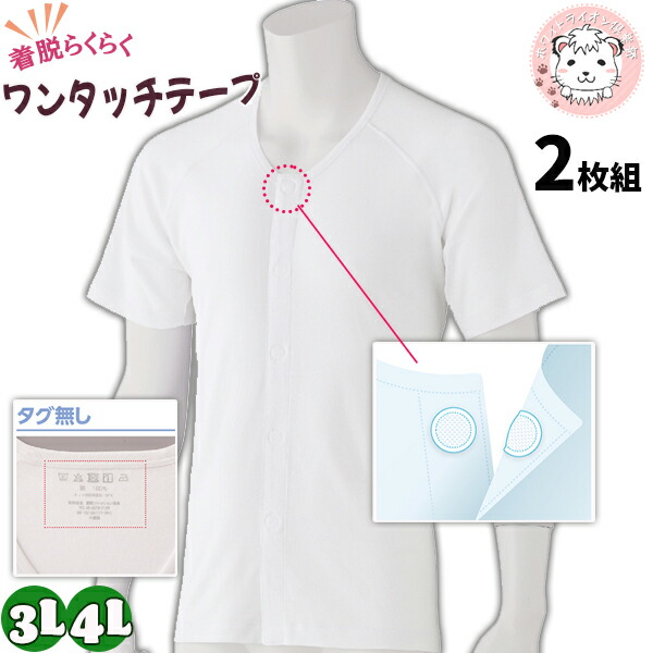 半袖 ワンタッチシャツ 2枚組 半袖 抗菌 防臭 綿100% 大きいサイズ 3L/4L | 紳士用 肌着 下着 入院 介護 マジックテープ ワンタッチテープ式 介護インナー 前開きシャツ