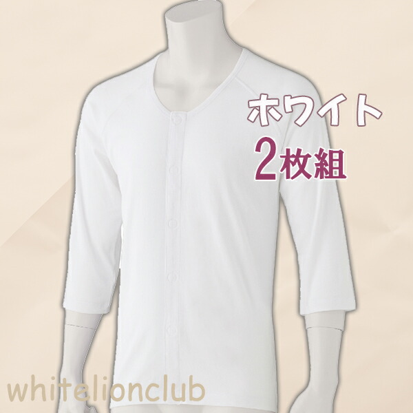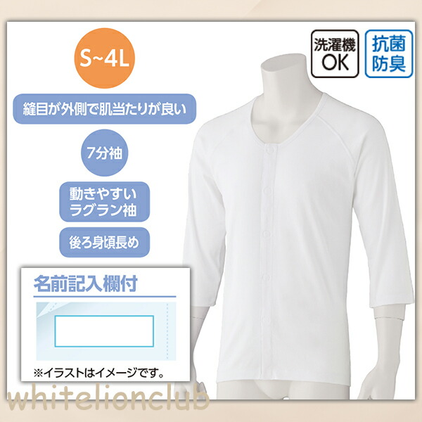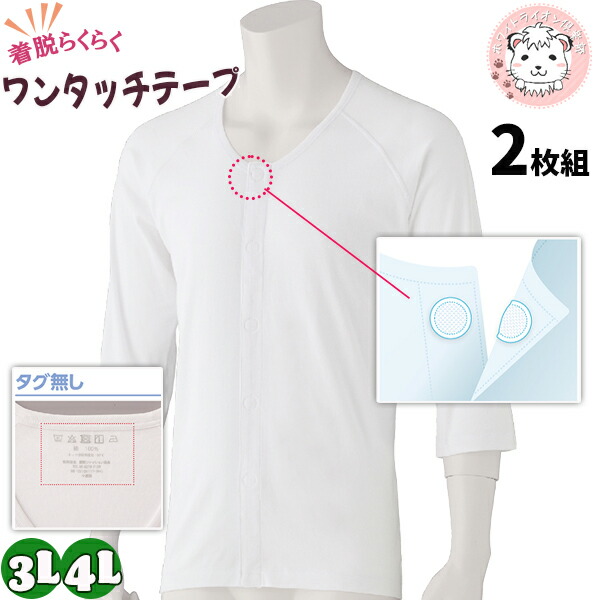 7分袖ワンタッチシャツ 2枚組 抗菌 防臭 綿100% 大きいサイズ 3L/4L | 紳士用 七分袖 ワンタッチテープ式 肌着 下着 入院 介護 マジックテープ 介護インナー