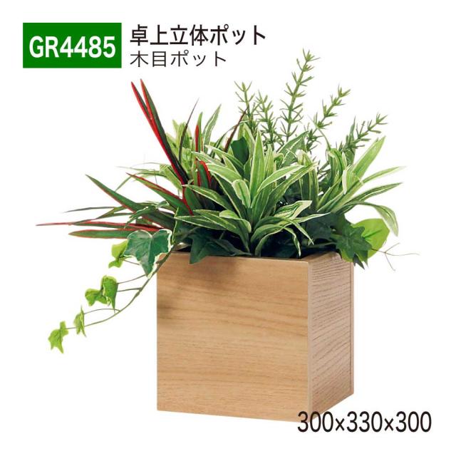 【正規代理店】ベルク グリーンモード GR4485 卓上ポット 立体ポット 木目ポット フェイクグリーン 人工観葉植物 インテリア 屋内用 国産