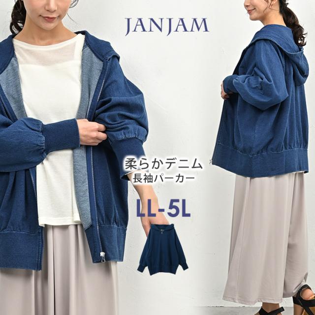 さらりと羽織れる柔らかデニムパーカー。 XXXXL 2XL 3XL 4XL 長袖ライトアウター 上着 フーディー SWT ゆったりサイズ ぽっちゃり女子 プラスサイズ