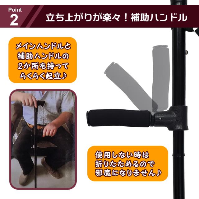 立ったり座ったりするときに便利は補助ハンドル付きです。