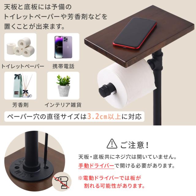 トイレットペーパースタンド トイレットペーパーホルダー トイレ収納 天板付き 組立品 おしゃれ シンプル 自宅 オフィス トイレホルダー トイレットペーパー収納 ペーパーホルダー 小物置き 収納 トイレ ネジ固定 棚あり 棚付き ペーパータオル