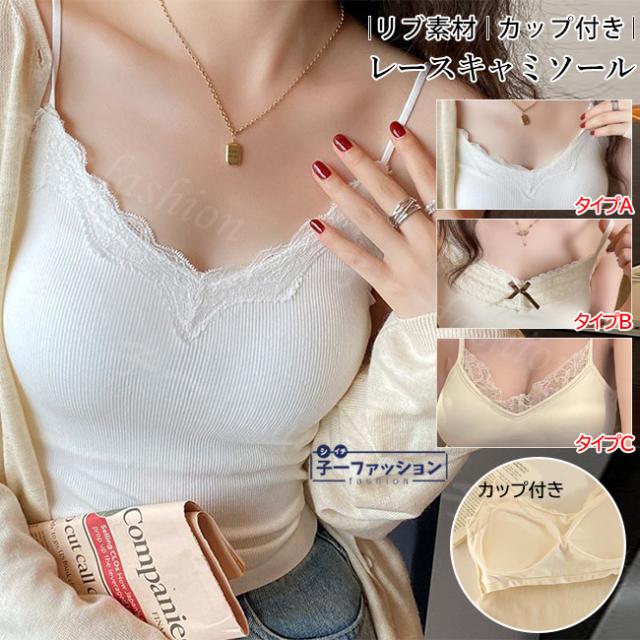 【2点まとめ買いで送料無料】カップ付きキャミソール 1点単品販売 春新作 新作 キャミソール キャミ カップ付き レース カップ レディース インナー 下着 肌着 重ね着 ストレッチ ルームウェア 部屋着 トップス 無地 通気 吸汗速乾 薄手 秋冬 バレンタイン