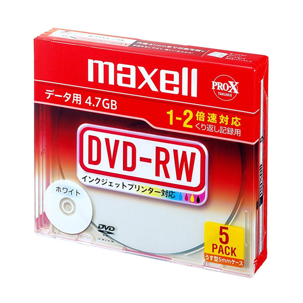 [マクセル] maxell データ用 DVD-RW 4.7GB 2倍速対応 インクジェットプリンタ対応 ホワイト 5枚 5mmケース入 [DRW47PWB.S1P5S A](消耗・