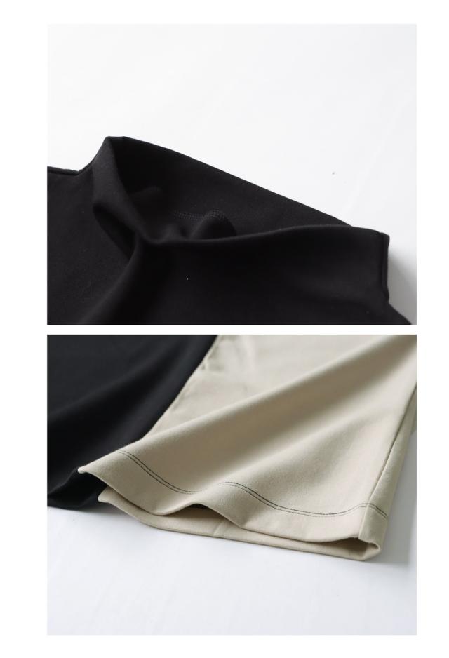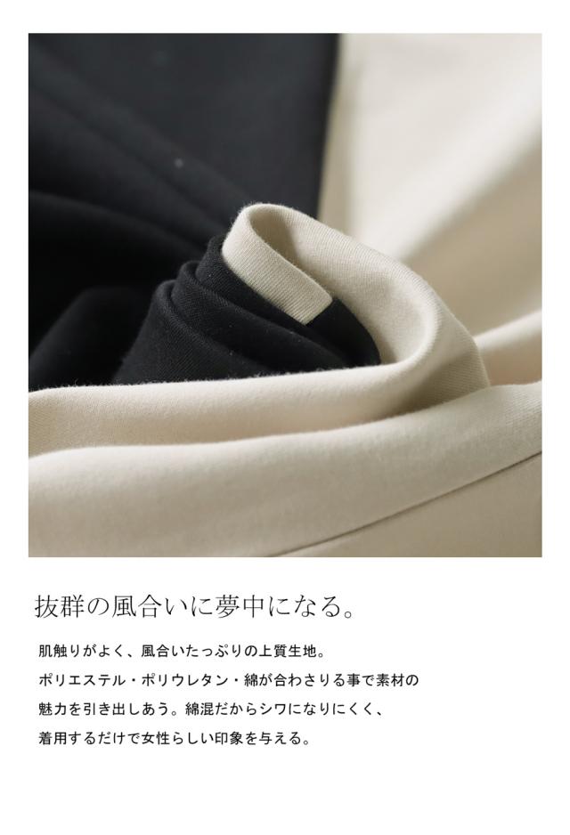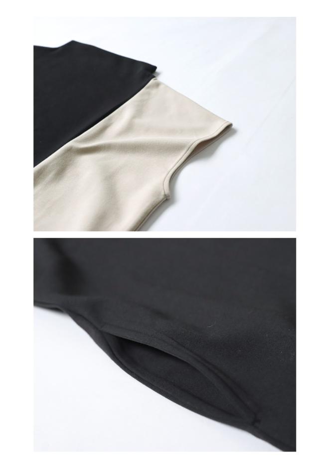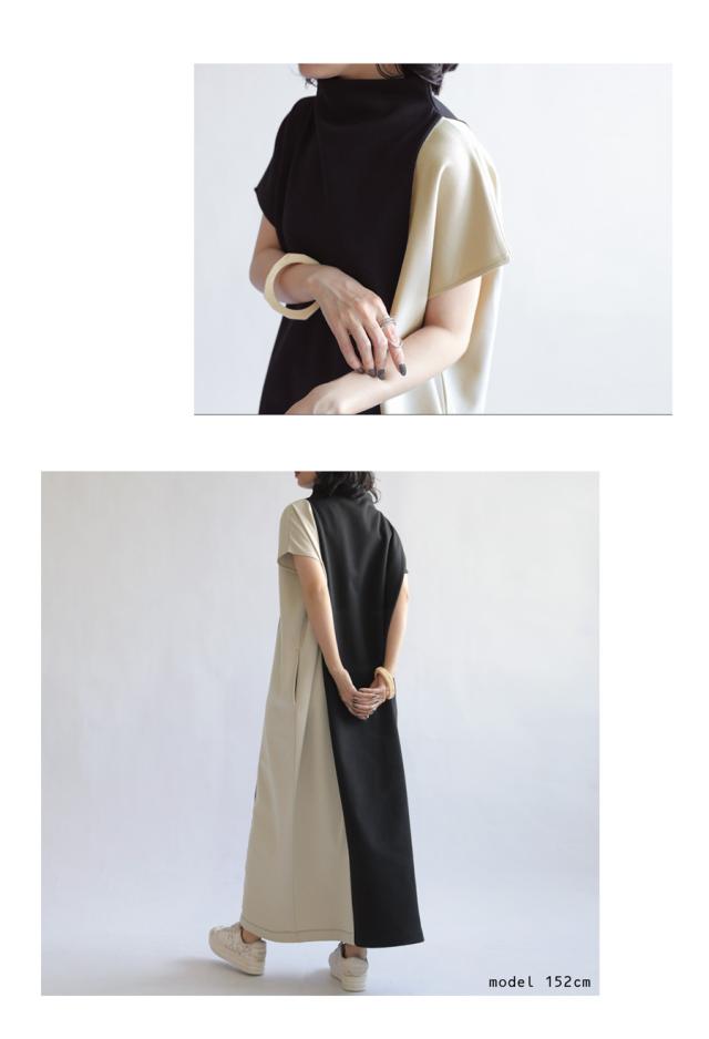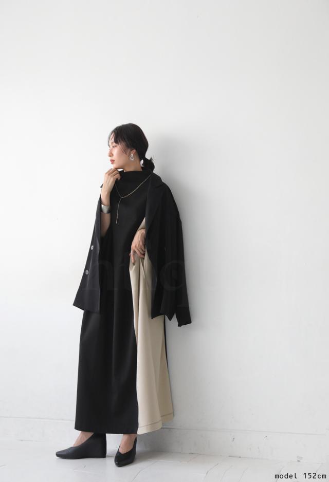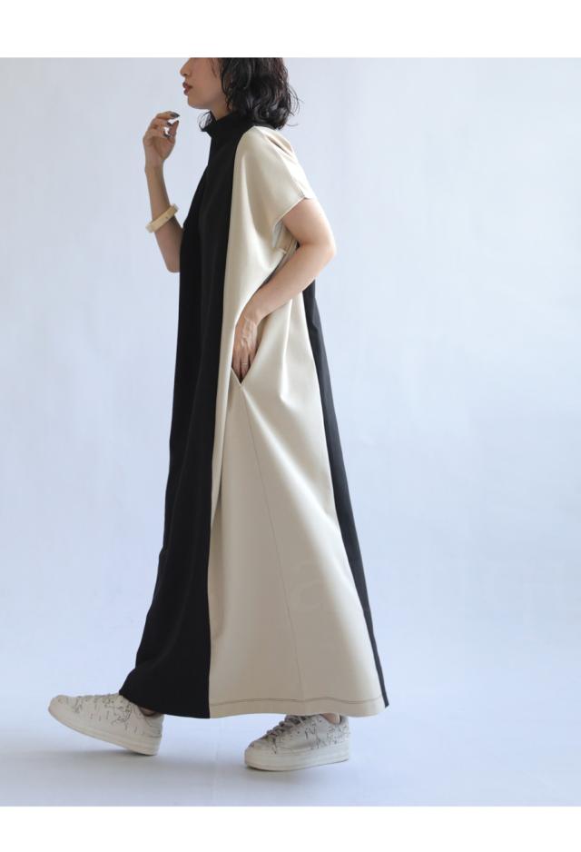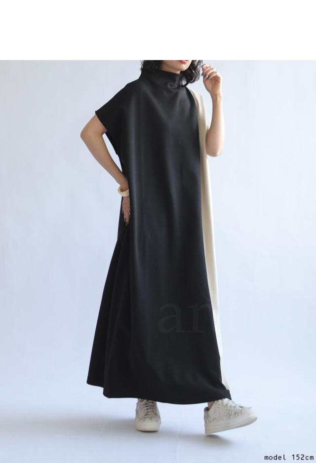 pn-00448 ゆったり シンプル きれいめ 上品 高級感 ロングワンピ ワンピ バイカラー オフタートル ボリューム 伸縮 着痩せ 体型カバー 大きいサイズ 楽ちん ラフ