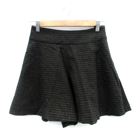【中古】ボンメルスリー キュロット ショートパンツ 短パン 千鳥格子柄 ウール 34 カーキ 黒 ブラック レディース