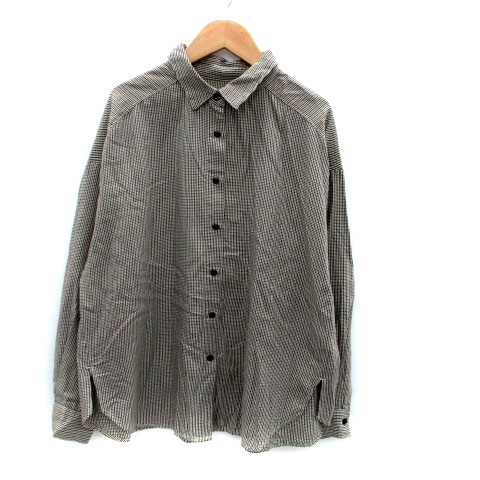 【中古】ページボーイ カジュアルシャツ 長袖 千鳥格子柄 オーバーサイズ F 茶色 ブラウン 黒 ブラック レディース