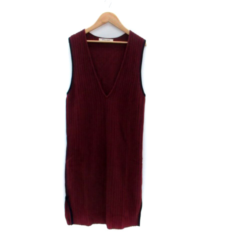 【中古】ミリオンカラッツ ジャンパースカート ニットワンピース ノースリーブ ミモレ丈 F ボルドー 紺 レディース